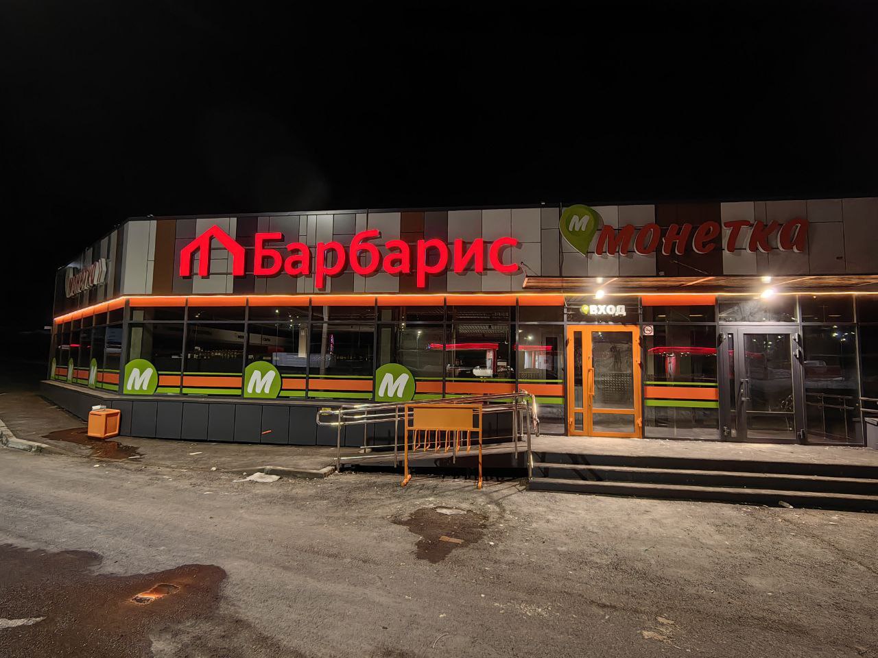 Декоративное оформление фасада ТЦ "Барбарис" в деревне Паздерино