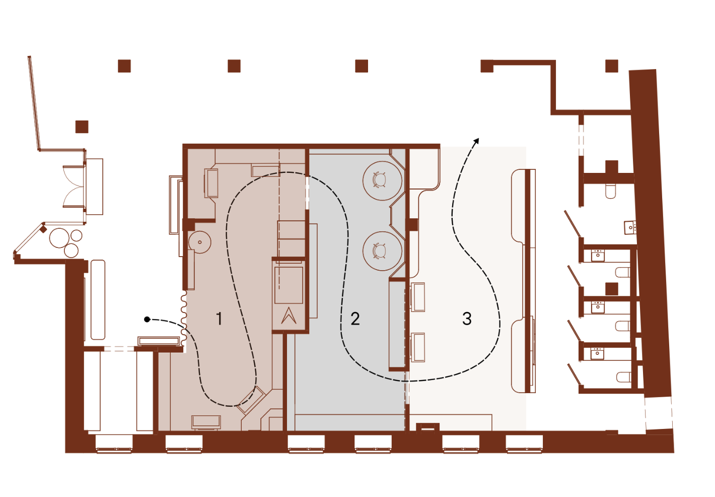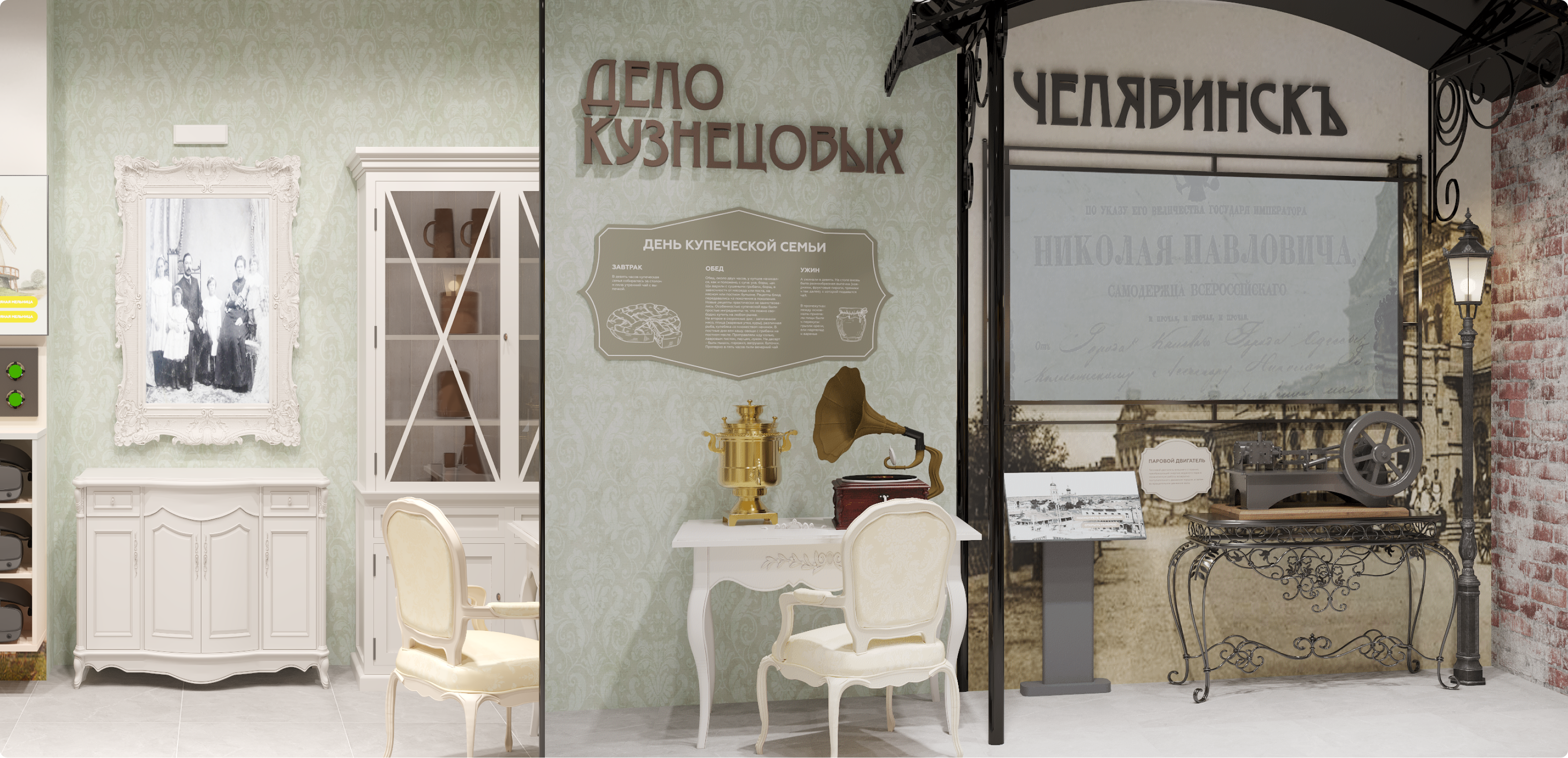 - экспозиционные зоны, интегрированные в интерьер