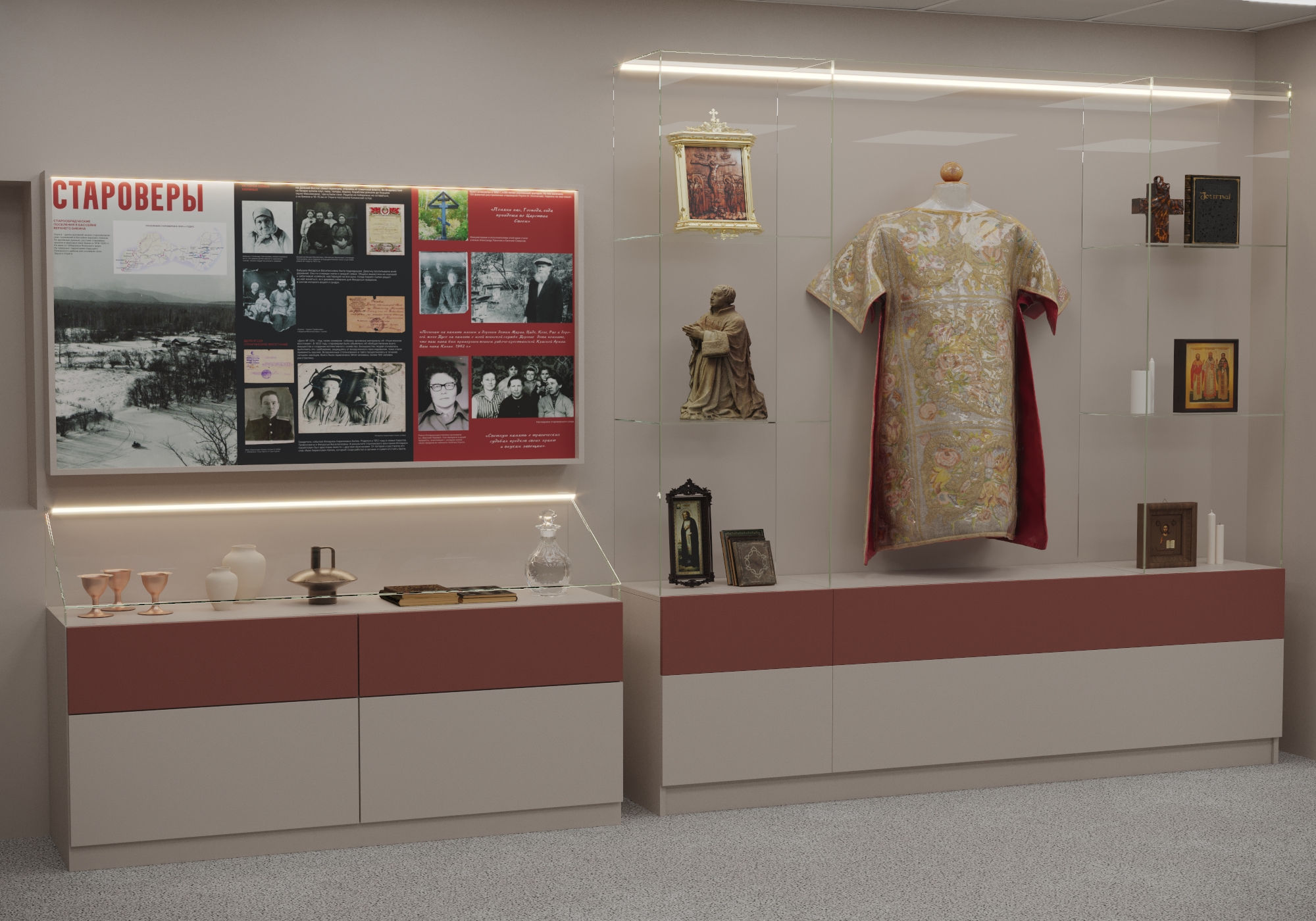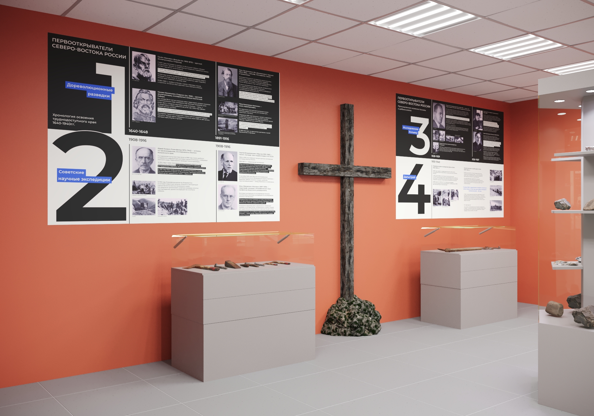 - Витрины и стенды спроектированы так, чтобы музей мог обновляться без полной переделки оборудования.