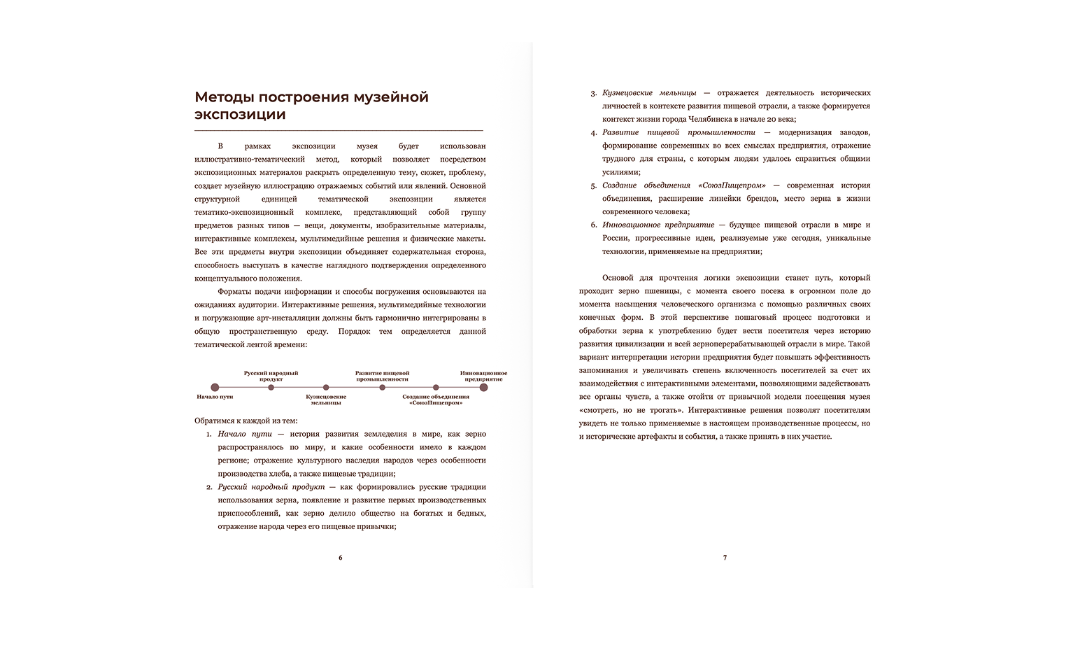Вы получаете структурированную презентацию с описанием зон, сценария, логики маршрута и примерами подачи материала. При необходимости добавляется научная часть и обоснование решений. -