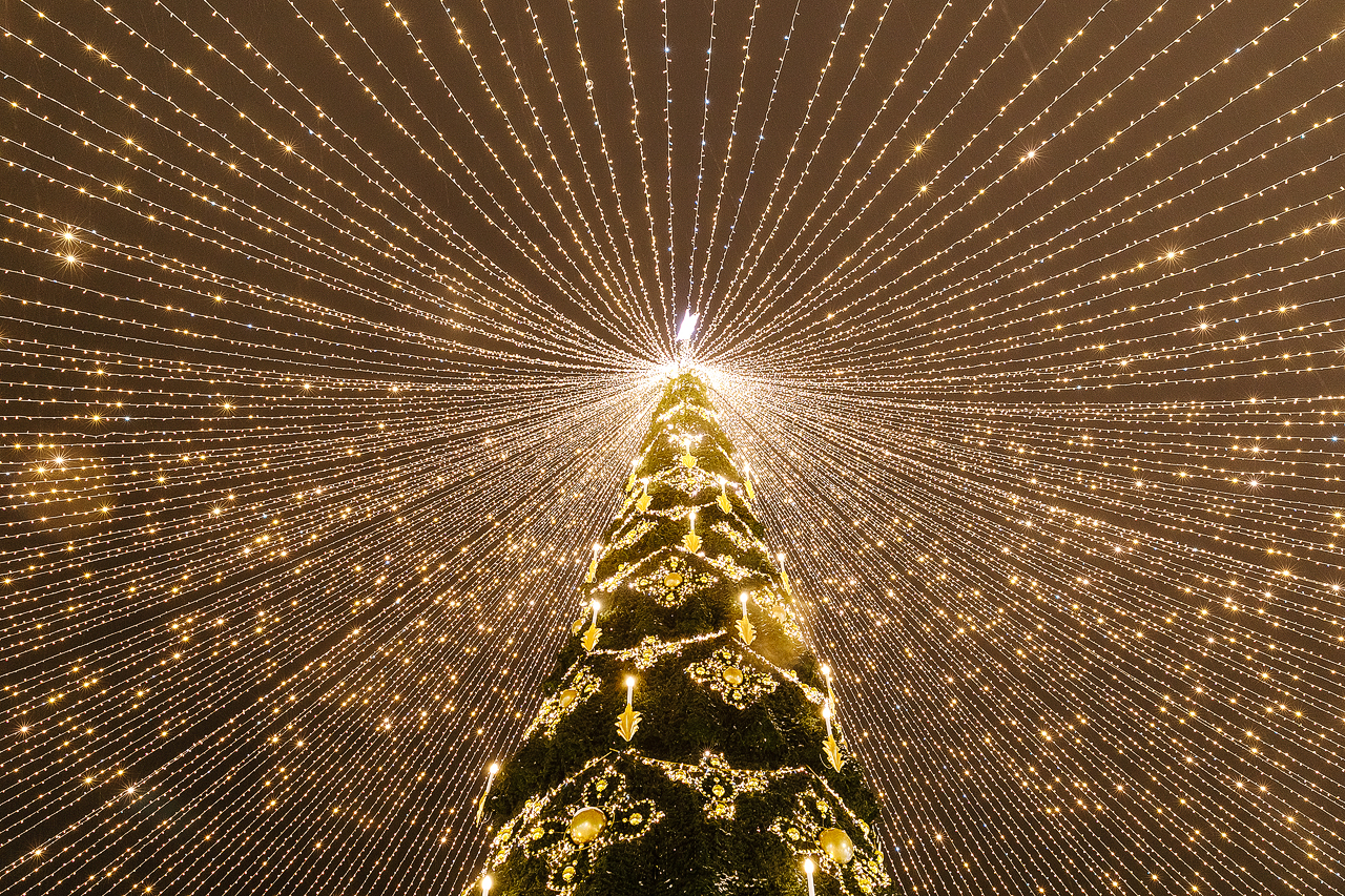 Помимо оформления самой ели, мы также занимались арендой оборудования, включая предоставление экранов и мебели, что позволило организовать праздничное пространство на высоком уровне.
