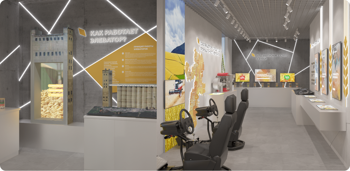 Проект «Зерно» — это разработка музея нового формата для компании «Союзпищепром», где корпоративная история становится основой для общения, творчества и развития.