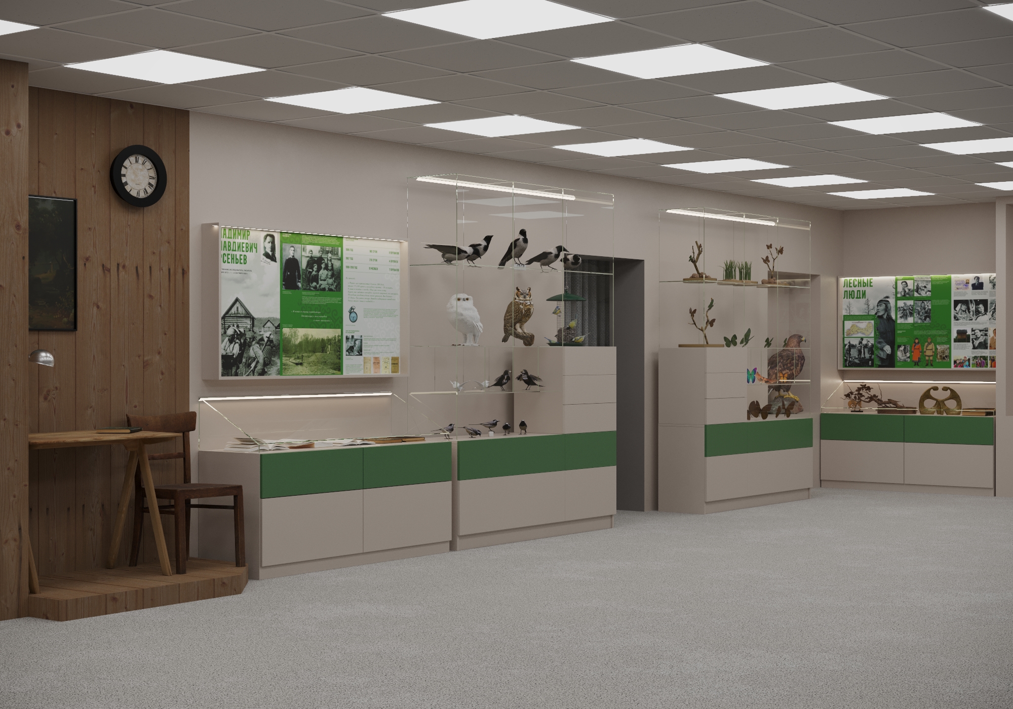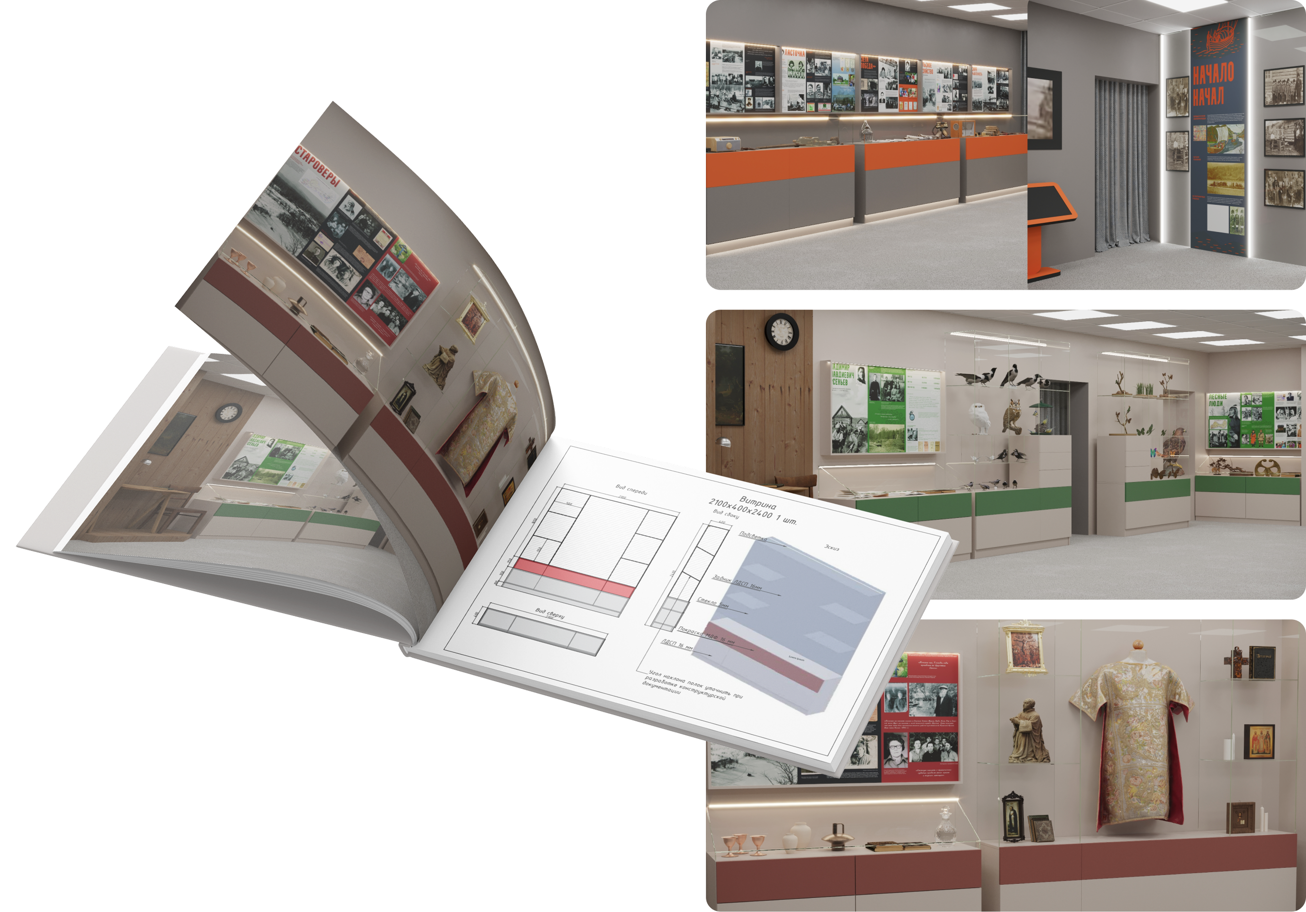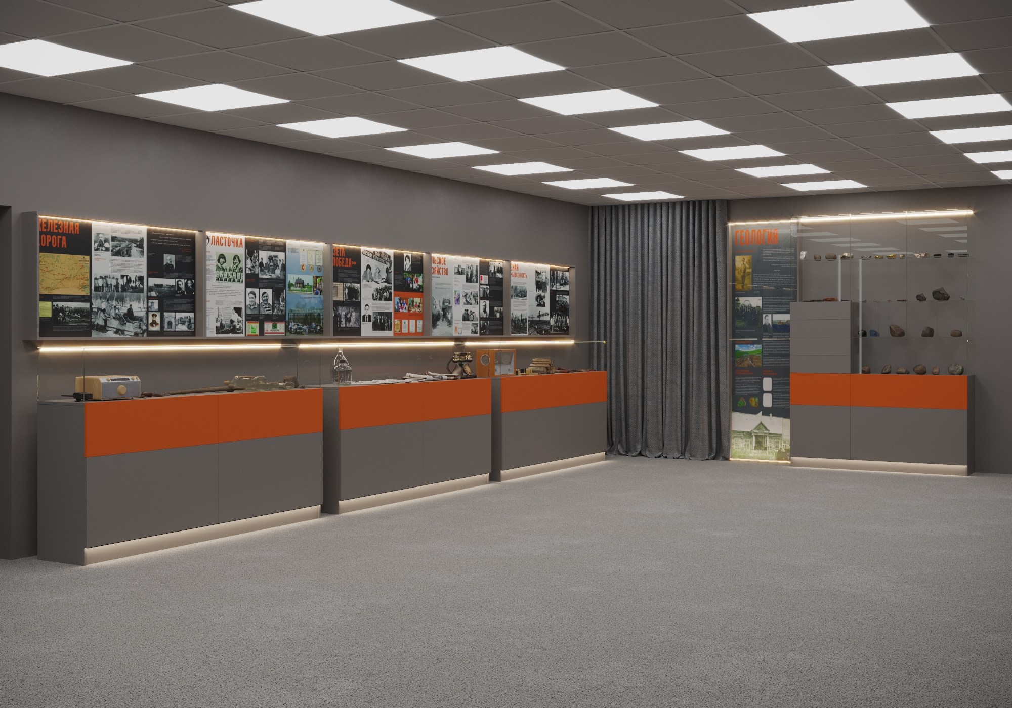 - Витрины и стенды спроектированы так, чтобы музей мог обновляться без полной переделки оборудования.
