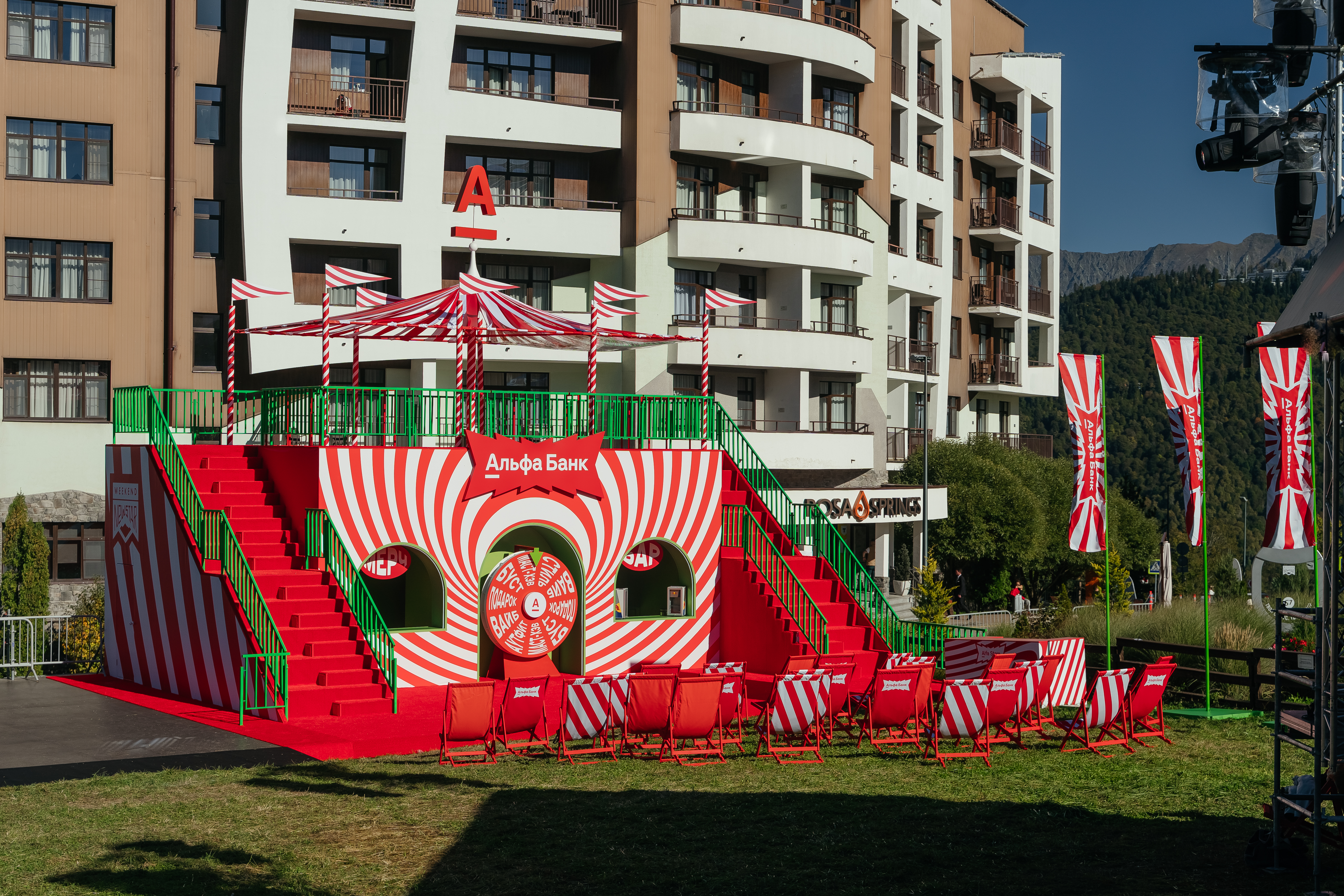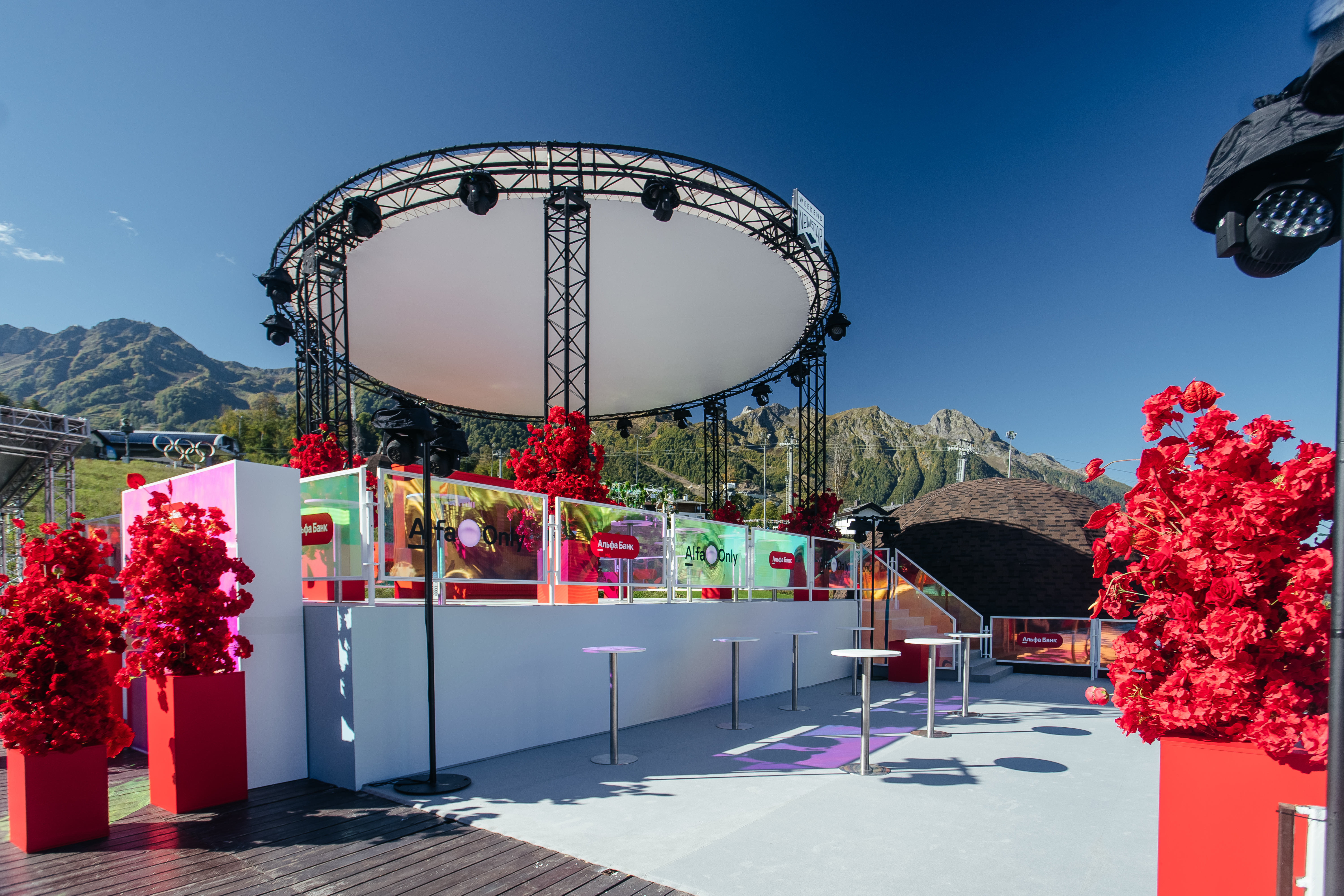 Для мероприятия NEWSTAR Weekend 25 сентярбя в г. Сочи изготовили, доставили и смонтировали 2 яркие зоны для Альфа-Банка: Стенд "Цирк" и зона VIP Lounge Альфа Only.